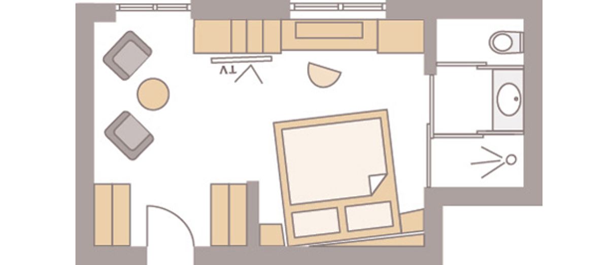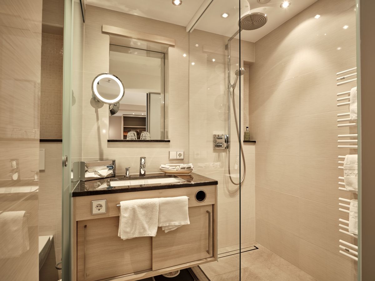 22 m² großes Doppelzimmer ist mit WC und Dusche, edlem Escheholzboden und beleuchtetem Kosmetikspiegel ausgestattet. Bettgröße 150 cm x 200 cm, Einzelmatratzen. Flat-Screen mit Sat-TV, Internetanschluss mit W-Lan und Lan kostenfrei, Minibar, Radio, Safe, Schreibplatz Sitzgelegenheit, Telefon, Weckeinrichtung. Keine Tiere Bettgröße: 150 cm x 200cm