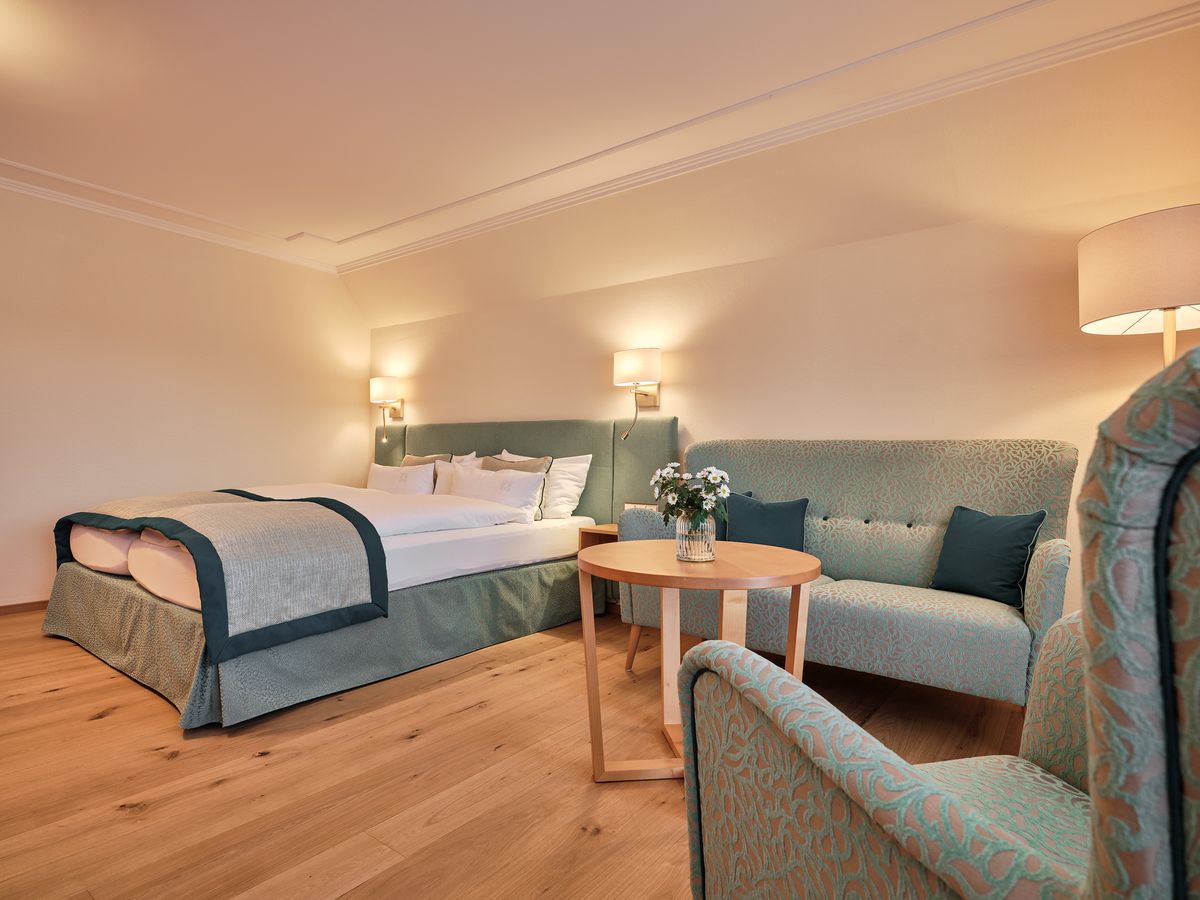 43 m² großes Nichtraucherdoppelzimmer in neuem Design! mit WC und Dusche, Bidet, Doppelwaschbecken und beleuchtetem Kosmetikspiegel ausgestattet, große Terrasse zur Weiherseite nach Osten, Flat- Screen, Internetanschluss W-LAN und Lan kostenfrei. Minibar, Radio, Safe, Schreibtisch, Sitzgruppe, Telefon, Weckeinrichtung. Das Zimmer befindet sich auf der 1. Etage. Bettgröße: 180 cm x 200cm