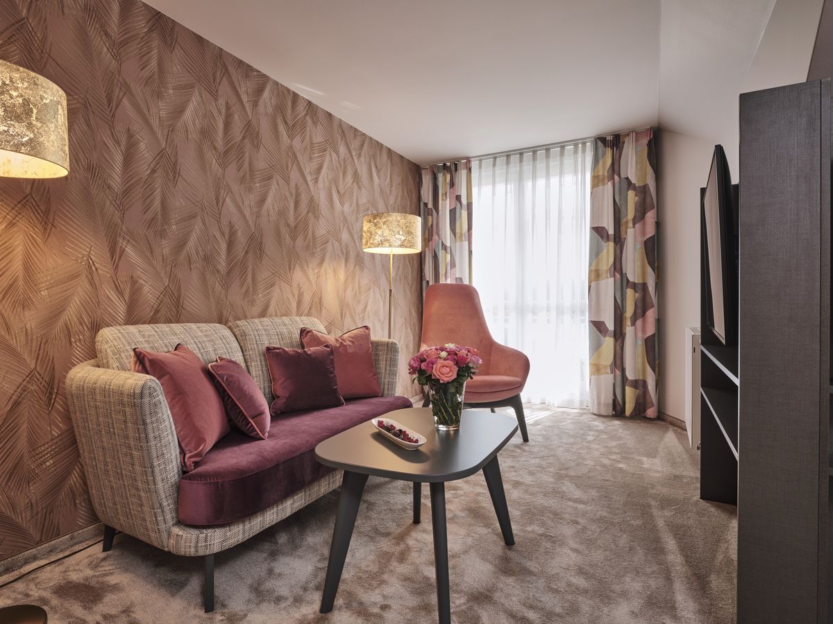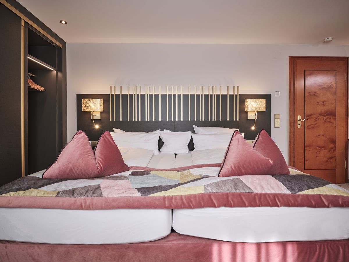 46 m² großes modernes Nichtraucherdoppelzimmer in hellen Farben.